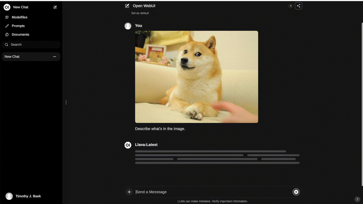 | llava:latest | 8dd30f6b0cb1 | 4.7 GB | 4 weeks ago |