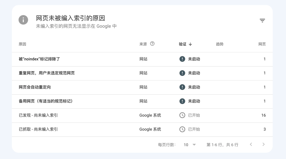 “Google Search Console 中提示未能加入索引的提示”