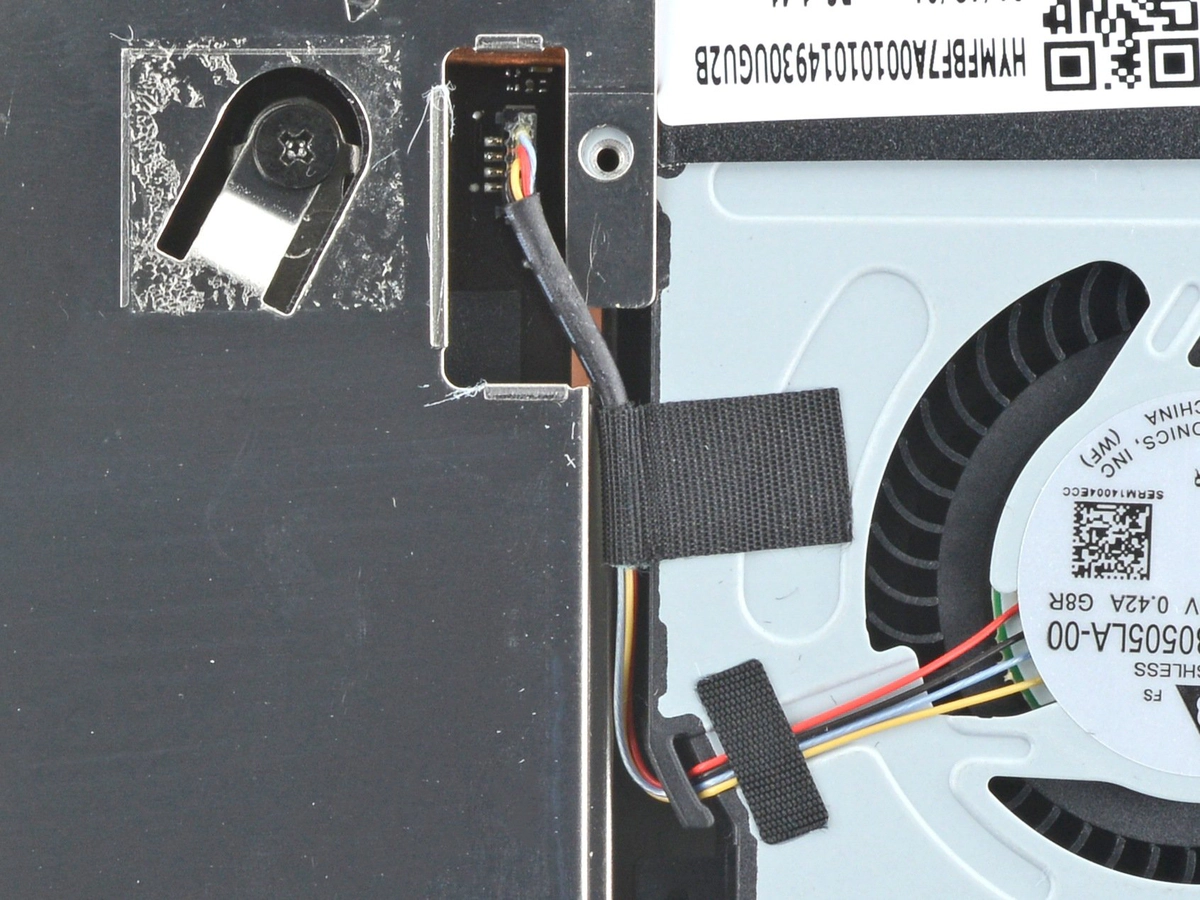 During reassembly, ensure that the fan cable lays on the side of the board shield and isn’t pinched underneath.