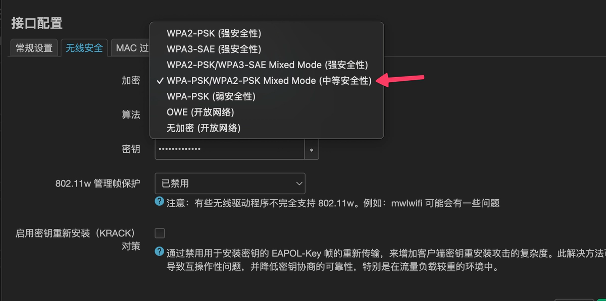 需要降级到支持 WPA-PSK 加密,尽管这引入了额外的安全风险。